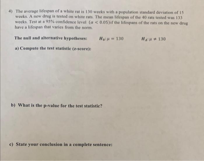 Solved 4) The average lifespan of a white rat is 130 weeks